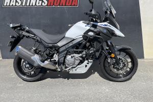 A very tidy V-Strom 650 loaded with accessories and ready to hit the road now! A very versatile mid weight bike that is just at home on the gravel trails as it touring the highways. Fitted with heated grips, rear pack frame and a Yoshimura exhaust along with a Givi engine guard for that all important protection while out on your next adventure. An additional bonus is the brand new spare set of tires that come with this bike.